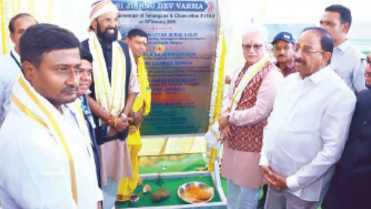 The Governor laid the foundation stone for an Agriculture College to be built at Mughdum Nagar near Huzurnagar on 100 acres at a cost of Rs 150 crore. He also laid the foundation stone for a Jawahar Navodaya Vidyalaya near Kodad costing Rs 50 crore. In addition, he laid foundation stones for a pilgrims’ rest house, a new kitchen shed, and dormitory buildings at the Mattapalli temple, each project costing about Rs 1 crore.