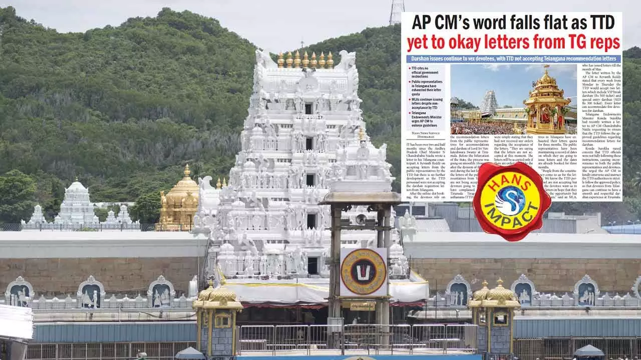 It may be mentioned here that The Hans India had published an article on Monday on lack of decision by the TTD even after the passing of two and half months since the AP CM had written a letter to his Telangana counterpart A Revanth Reddy.