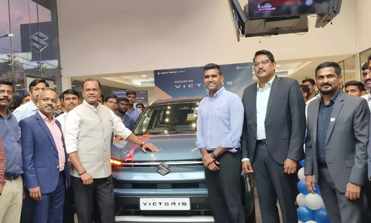Hyderabad: Maruti launched its new Victoris car at Pavan Motors in Serilingampally, Hyderabad. The hybrid model offers up to 28.65 kmpl mileage, advanced safety features, and a five-star Bharat NCAP rating.