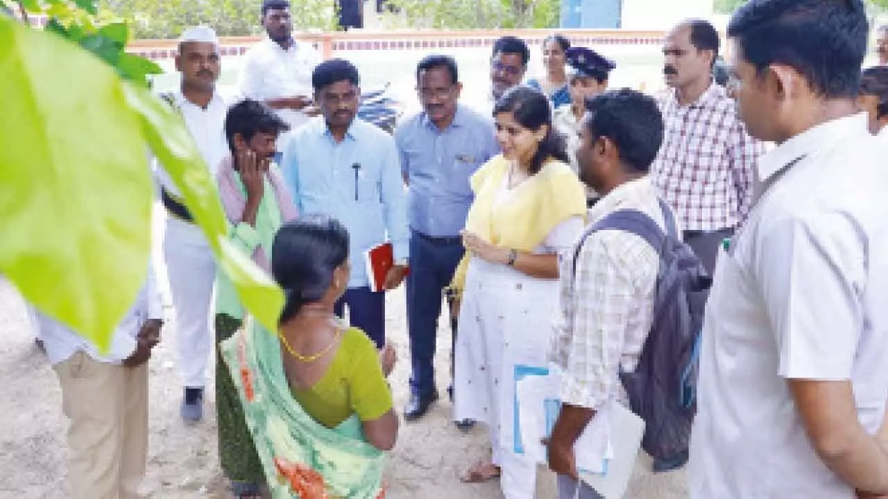 Chandur (Nalgonda): “We had been living in huts for the past ten years. After the new government came to power under the leadership of CM Revanth Reddy, we are delighted to receive an Indiramma house under the housing scheme,” said Kukkala Bojjamma and Omkar from Udatala Palli village in Chandur mandal of Munugodu constituency in the district, while speaking to District Collector Ila Tripathi. On Thursday, the Collector made a surprise visit to the village and inspected the construction of Indiramma houses. During the visit, she interacted with the beneficiaries who confirmed that they received the basement construction bill and thanked the State government for support.