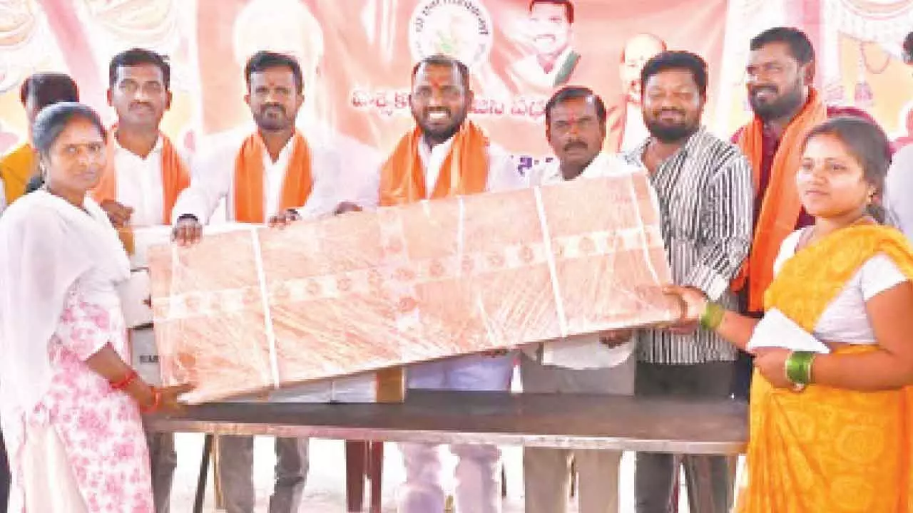 Karimnagar: Karimnagar Mayor Kolagani Srinivas distributed tool kits to beneficiaries under the PM Vishwakarma Yojana at a programme held in Chintakunta under the jurisdiction of the Karimnagar Municipal Corporation on Friday.