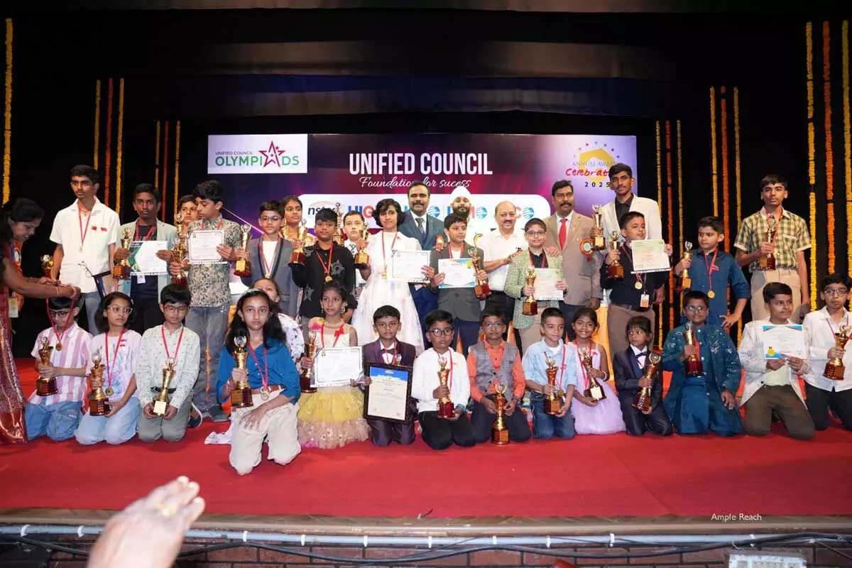 Hyderabad: The Unified Council celebrated its prestigious Annual Awards Celebrations – 2025 at Ravindra Bharathi, Hyderabad, recognizing top-performing students in a series of national and international Olympiads. These included the National Level Science Talent Search Examination (NSTSE), Unified Cyber Olympiad (UCO), Unified International English Olympiad (UIEO), Unified International Mathematics Olympiad (UIMO), and Unified International General Knowledge Olympiad (UIGKO).