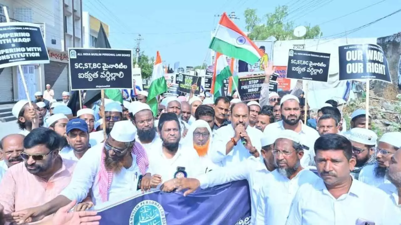 Gadwal: In a powerful show of solidarity, MLA Bandla Krishnamohan Reddy participated in a rally organized by members of the minority community in Gadwal district headquarters, opposing the central government’s newly introduced legislation concerning the Waqf Board. The rally was a direct response to what the community sees as an unjust and discriminatory law against Muslims and the Waqf institution.