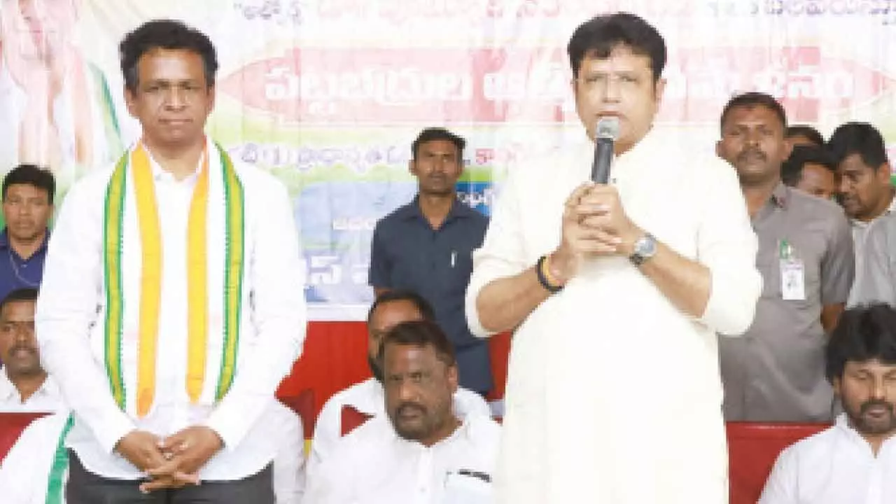 Minister D Sridhar Babu speaking at a meeting held at Peddapalli on Monday