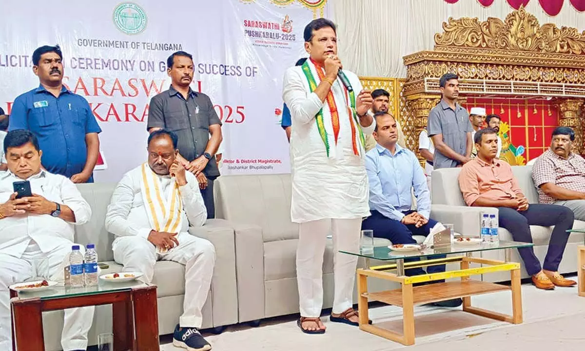 No Saturday, the minister participated in a ‘Saraswati Pushkaralu – A Day of Thanks’ event held in Bhupalapally. Addressing the gathering, he stated that the government is committed to conduct the Godavari Pushkaralu in 2027 on a grand scale.