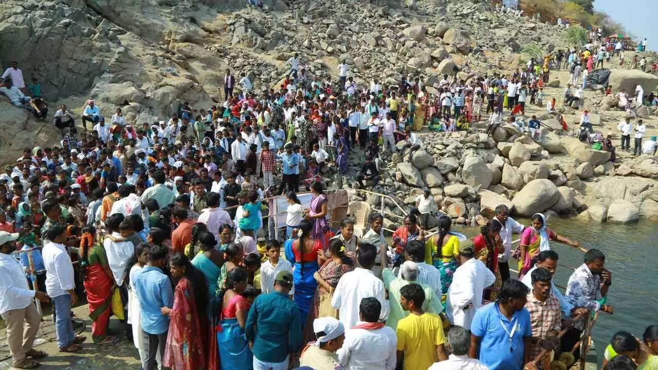 Childless devotees who visit the *Mallikharjuna Swamy* temple affectionately call him "Santan Mallikharjunudu," meaning the Giver of Children. It is a popular belief that if they bathe in the Krishna River, hold sesame seeds in their mouth, climb the hill, and spit the seeds on a boulder, the number of children they will have corresponds to the number of seeds that stick.