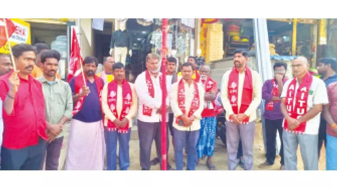 Several CPI and mass organization leaders participated in the event, including District Executive Committee Member Ashanna Ranganna, Mandal Secretary Kasim, Mandal Assistant Secretary Venkatesh, Town Assistant Secretary Narayana, Khader Basha, AIYF District Secretary Krishna, AISF District Secretary Praveen, AITUC leaders Venkata Ramireddy, Venkata Ramulu, Venkatesh, and representatives of lorry hamali, transport, bike-rickshaw, and auto workers’ unions. CPI town leaders Narsing Rao, student leader Bharath, farmers’ union leader Lakshmanna, and several others were also present at the celebrations.
