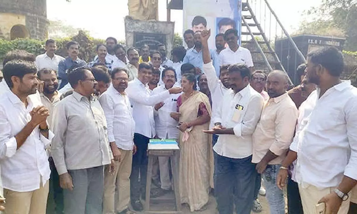 The celebrations began at the local bus stand, where supporters offered floral tributes to the statue of Rajasekhar Reddy. As part of service activities, fruits and bread were distributed to patients at the local government hospital.